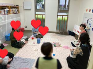 絵本に合わせて横に揺れたり、保護者の方と目を合わせながら行うと